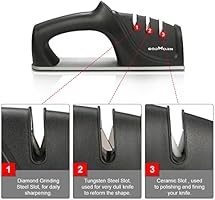 Godmorn manual knife sharpener 4 in 1 kitchen knife sharpener 4 stage professional manual sharpening tool for kitchen knives non slip and ergonomic design perfect for chef and home use 43 out of 5 stars 200. Simpletaste kitchen knives sharpener 3 in 1 manual system. Chefs choice 464 pronto manual knife sharpener is one of the fastest manual sharpeners.