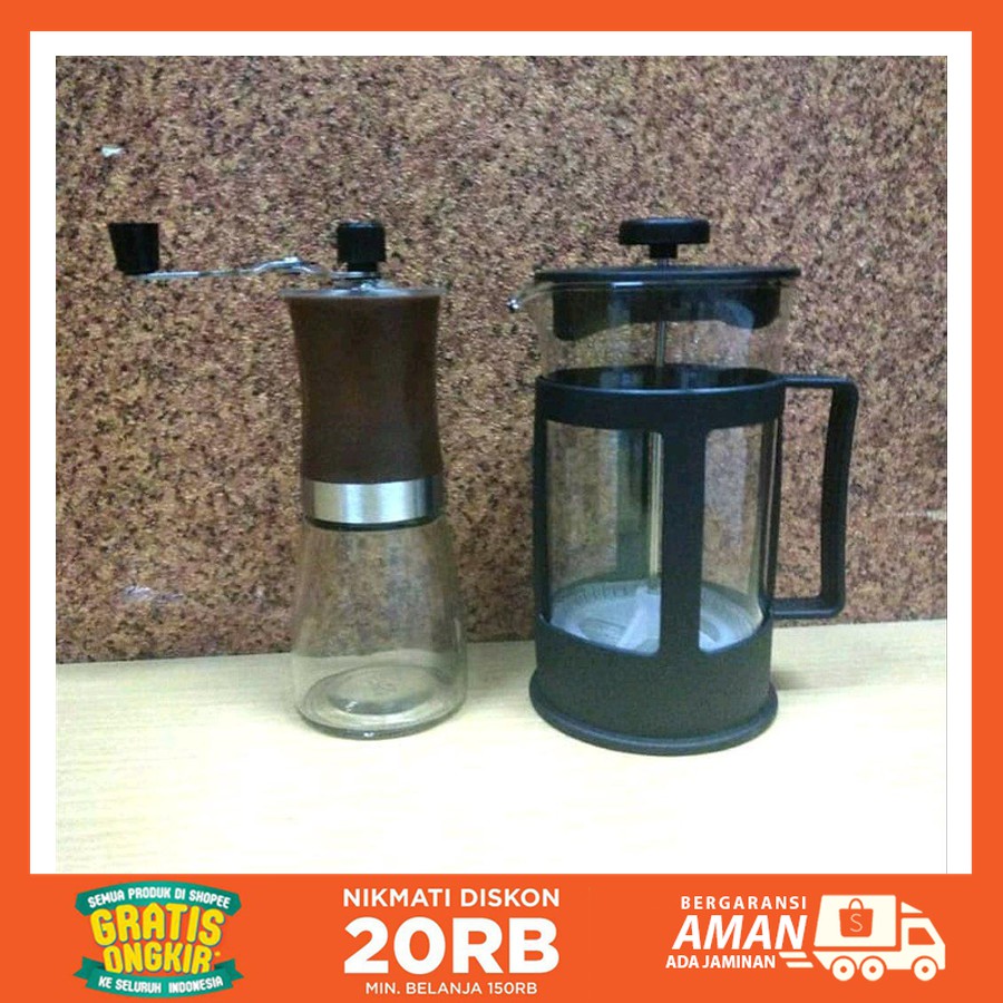 Diskon French Press Dan Grinder Manual Coffee Maker Set Murah