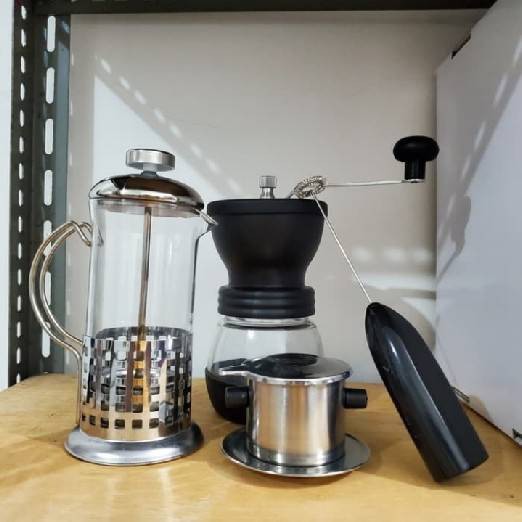 Paket 1 Peralatan Kopi Manual Coffee Grinder French Press