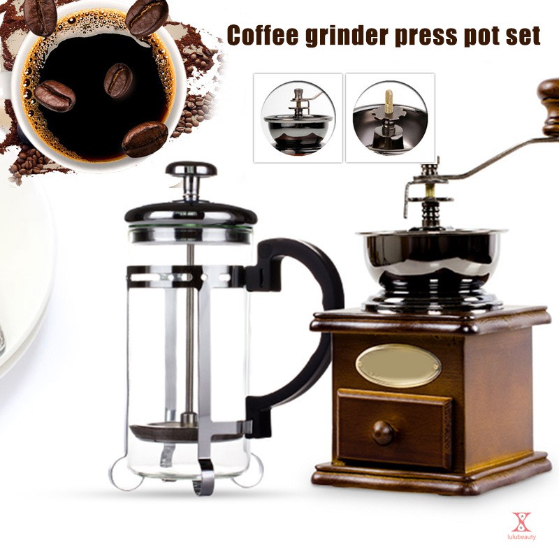 Grinder Press Pot Set Manual Coffee Grinder Coffee Maker Wooden