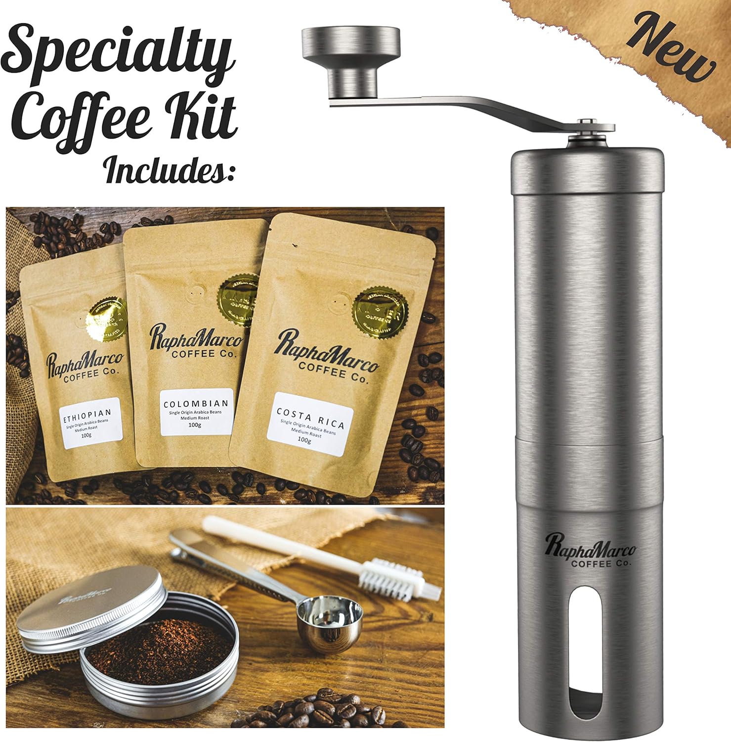 Manual Coffee Grinder Kit 3x100g Of Whole Coffee Beans